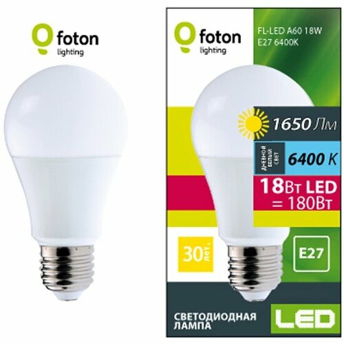 Светодиодная лампа FOTON LIGHTING FL-LED A60 18W E27 6400К 220В 1650Лм d60x120