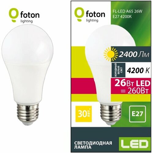Светодиодная лампа FOTON LIGHTING FL-LED A65 26W E27 4200К 220В 2400Лм d65x133
