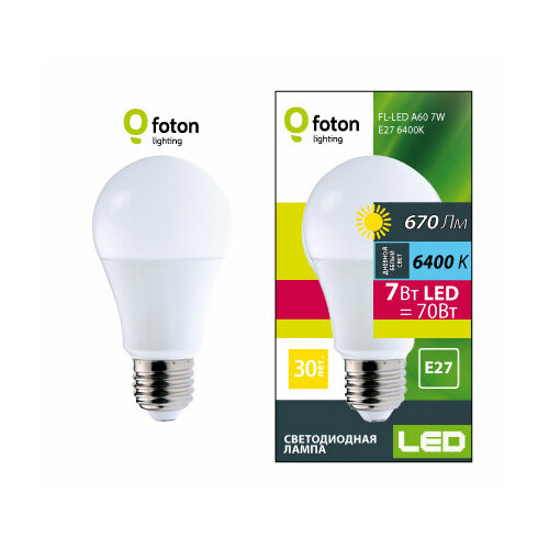 Светодиодная лампа FOTON LIGHTING FL-LED A60 7W E27 6400К 220В 670Лм 60*109мм (упаковка 10 шт.)