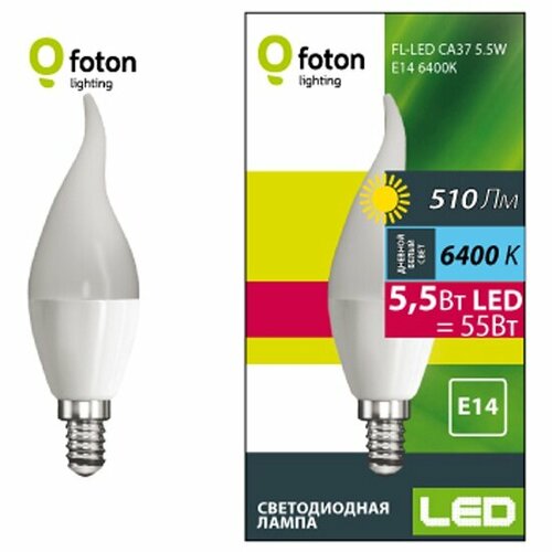 Светодиодная лампа FOTON LIGHTING FL-LED CA37 5.5W E14 6400К 220V 510Лм 37*108мм