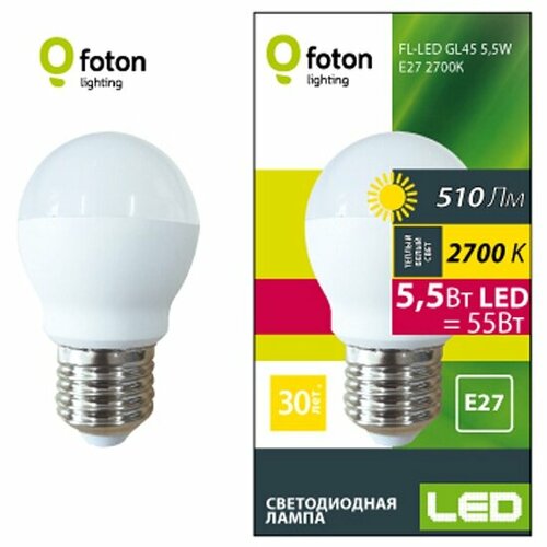 Светодиодная лампа FOTON LIGHTING FL-LED GL45 5.5W E27 2700К 220V 510Lm 45x80мм