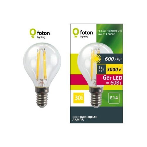 Светодиодная лампа FOTON LIGHTING FL-LED Filament G45 6W E14 3000К 220V 600Лм 45*75мм