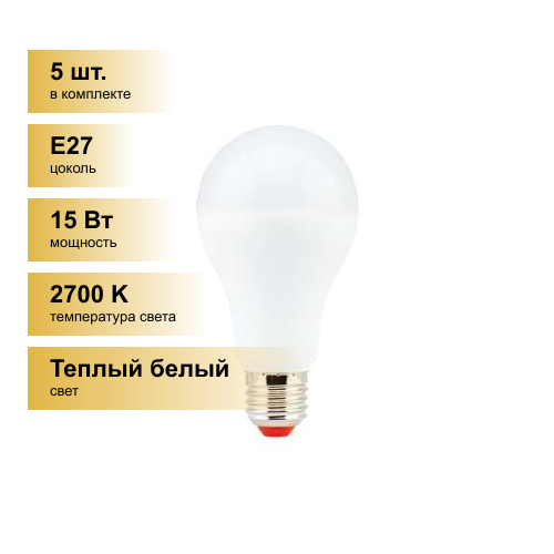 (5 шт.) Светодиодная лампочка Ecola ЛОН A60 E27 15W 2700K 2K 120x60 Premium D7SW15ELY