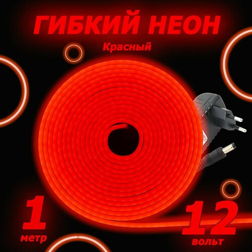 Гибкий неон красный, Неоновая лента светодиодная 5 метров, Неоновая подсветка декоративная 12 220В, адаптер для подключения К сети В подарок