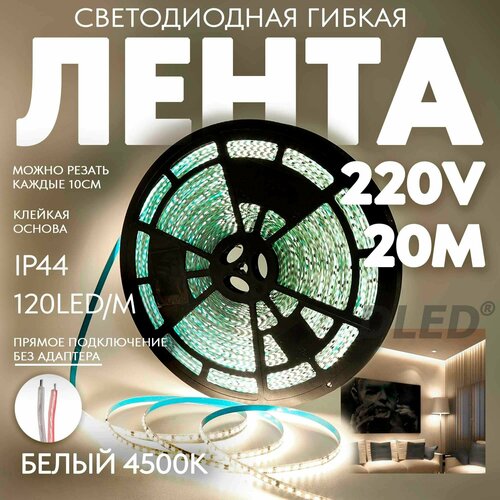 Светодиодная лента влагостойкая 220V 120 LED/m для прямого подключения, Белый цвет свечения 4500K - 20 метров