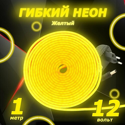 Светодиодный неон SMD 2835 (120 LED Желтый) 12 x 6мм - Декоративная Лента на 1м с Блоком Питания