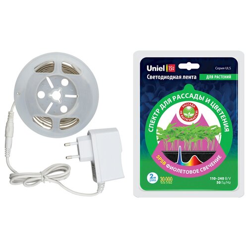 Uniel Фитолента светодиодная Uniel, 12 В, SMD2835, 2 м, IP20, 7.5Вт/м, 42LED/м, мультиспектральная