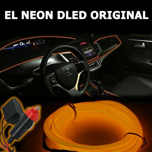 Набор DLED EL неон 2.3мм "Оранжевый" фиксатором 3м с инвертором - прикуривателем 12V