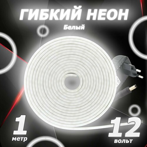 Светодиодный неон SMD 2835 (120 LED Белый) 12 x 6мм - Декоративная Лента на 1м с Блоком Питания