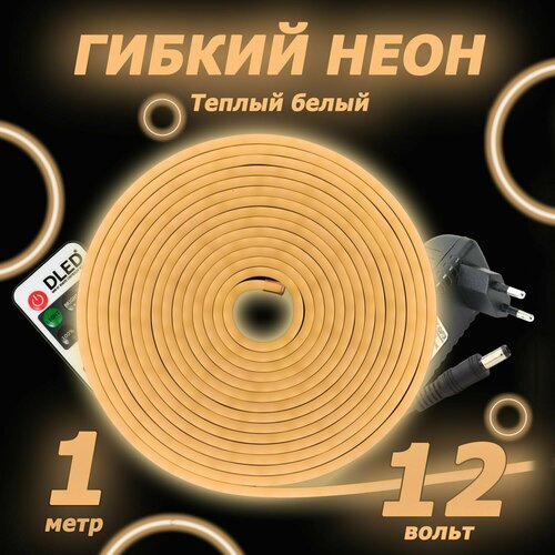 Светодиодный неон SMD 2835 (120 LED Теплый белый) 12 x 6мм 1м с блоком питания и пультом управления