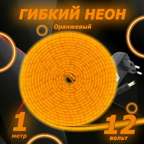 Светодиодный неон SMD 2835 (120 LED Оранжевый) 12 x 6мм - Декоративная Лента на 1м с Блоком Питания