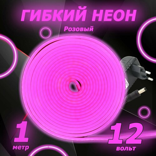 Светодиодный неон SMD 2835 (120 LED Розовый) 12 x 6мм - Декоративная Лента на 1м с Блоком Питания