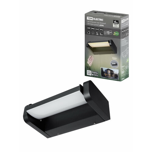 Светильник настенный LED. Аура. L200 мм. 6 Вт. 3000 K. алюм./черн. IP65. TDM