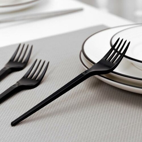 Вилка одноразовая чёрная «Премиум», 16,5 см