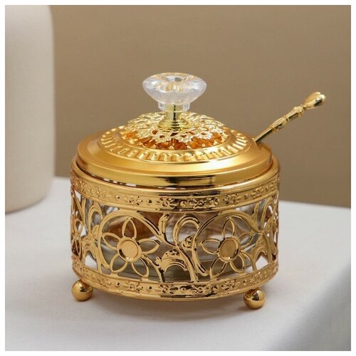 Сахарница «Дарина», 200 мл, 9×10 см, с ложкой, цвет золотой