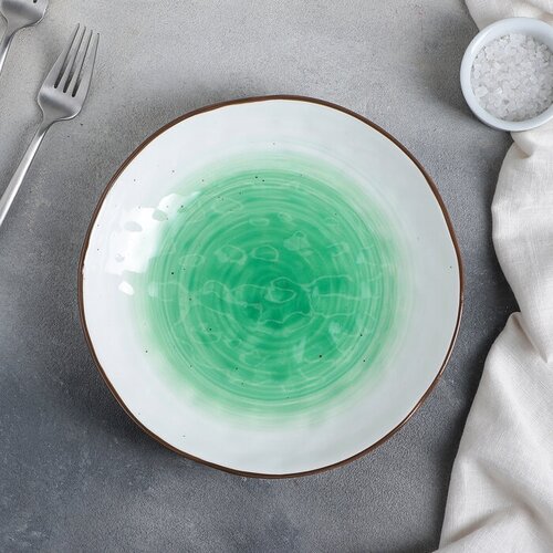Тарелка фарфоровая глубокая Доляна «Космос», 550 мл, d=21,5 см, цвет зелёный