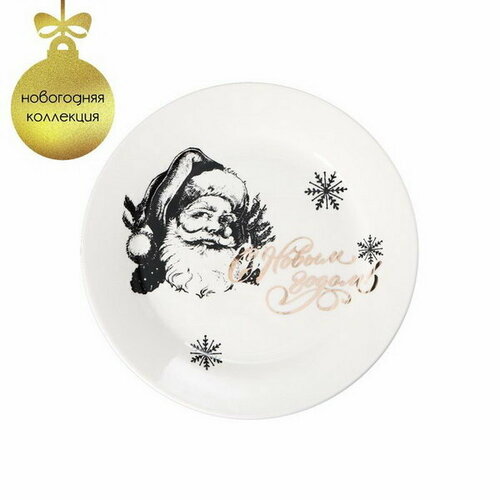 Тарелка фарфоровая "Дед Мороз и олени", d=25.5 см