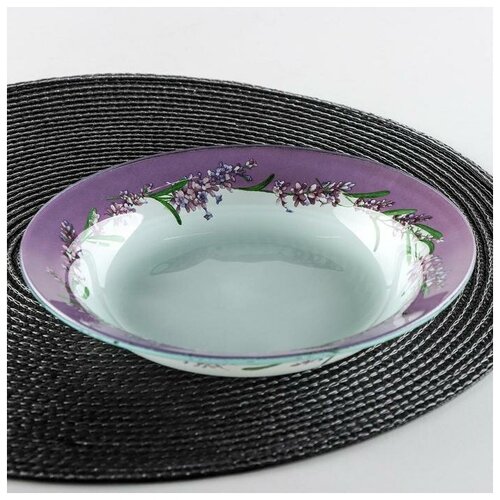 Тарелка стеклянная суповая Доляна «Веточка лаванды», 350 мл, d=18,5 см