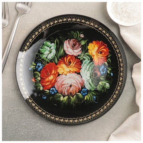 Тарелка обеденная Доляна «Народные мотивы», d=20 см, цвет чёрный