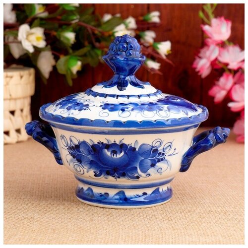 Сахарница «Ежевика», высота 15 см, D=19 см, гжель