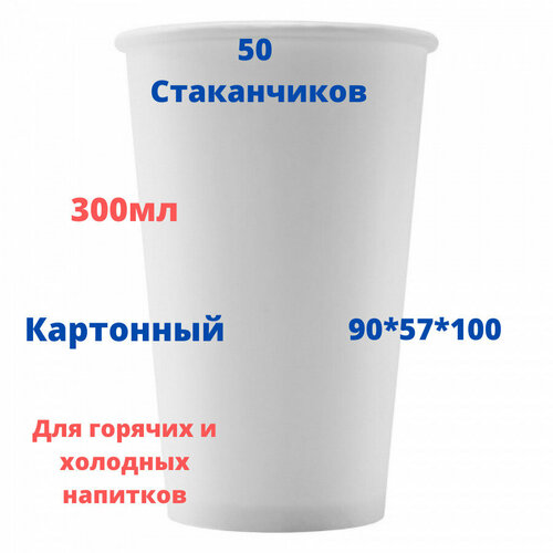 Стакан 50 шт белый для чая и кофе 300 мл/ Стаканчик белый картонный D90xD57xH100