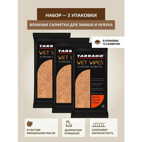 Салфетки влажные для замши, велюра, нубука TARRAGO 3 упаковки по 15 шт.
