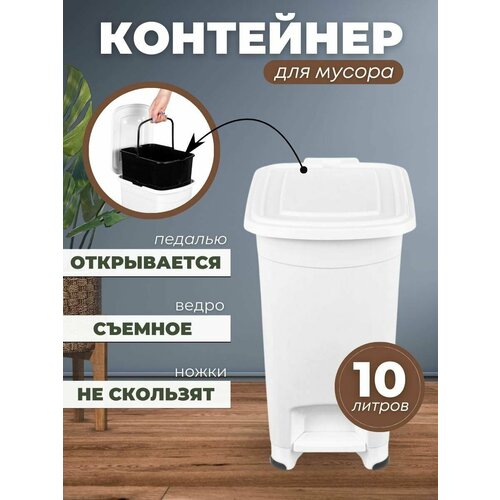 Мусорное ведро 10 л с педалью ведро для мусора пластиковое с педалью контейнер для мусора цвет -белый.