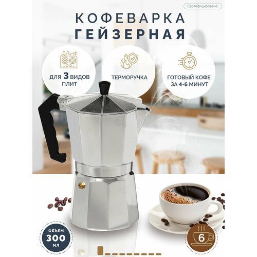 Кофеварка алюминиевая гейзерная TC-401-6 cups