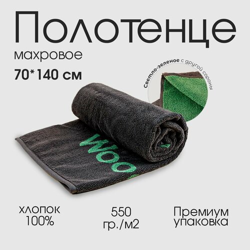 Махровое полотенце Woodson для ванной и бани 70х140, плотная ткань, 100% хлопок, двухцветное - серое и зеленое, в премиальной упаковке