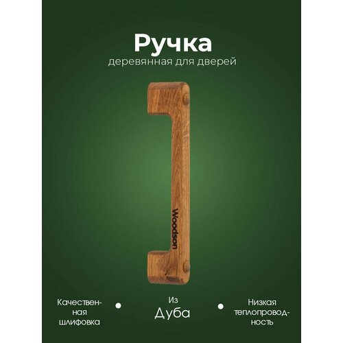 Деревянная дверная ручка в баню и сауну межкомнатная Woodson из кавказского дуба в виде скобы, коричневая, шлифованная, с межцентровым расстоянием 20 см
