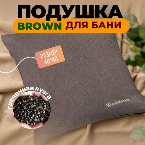 Ортопедическая подушка для головы в баню и сауну массажная Woodson, коричневого цвета, с наполнителем из гречичной лузги и двумя чехлами - защитным и водонепроницаемым, размеры подушки 40х40 см