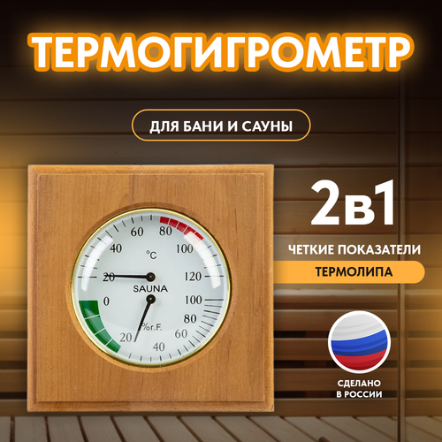Wood TH-12A (ольха) оценят все любители бани и сауны. Термогигрометр создан для измерения влажности и температуры воздуха внутри помещения сауны или бани и представляет из себя восьмиугольный деревянный корпус с окошком посредине, содержащим два полукруглых графичных циферблата. Цена температурного деления 5 градусов Цельсия, а деления влажности 5 процентов. Стильный дизайн характерен смешением правильной формы квадрата с обрезанными углами и отделки из полированного дерева светлого цвета. Все материалы экологически чистые, не выделяют вредных веществ и запахов и имеют долгий срок эксплуатации. Приобретая термометр-гигрометр Door