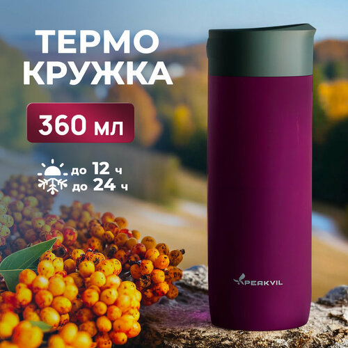 Термокружка Peakvil объемом 360 мл - это незаменимый аксессуар для любителей горячих напитков. Она поможет вам наслаждаться своим к...