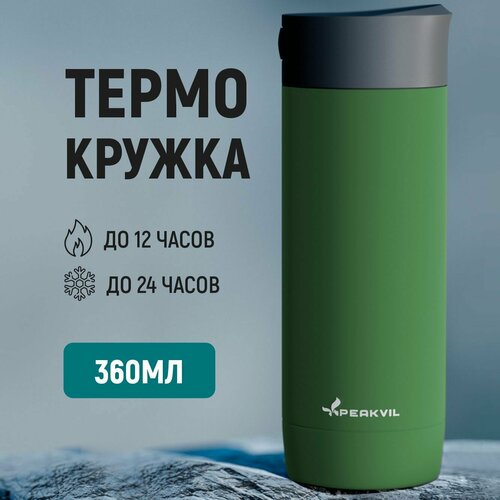 зеленыйТермокружка Peakvil объемом 360 мл - это незаменимый аксессуар для любителей горячих напитков. Она поможет вам наслаждаться своим кофе или чаем в любое время дня, будь то утро на работе, перерыв в офисе или вечерняя прогулка.