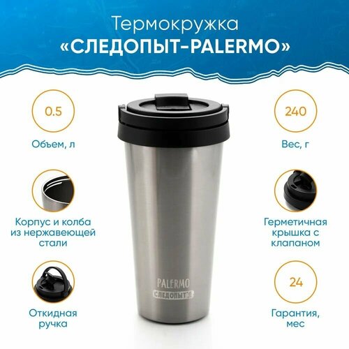 Термокружка "следопыт-palermo" с откидной ручкой, нерж. сталь, 500 мл