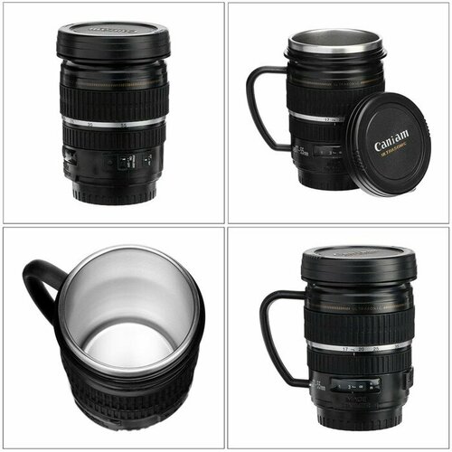 Термокружка "Объектив", 220 мл, сохраняет тепло 2 часа, термос с ручкой, черная