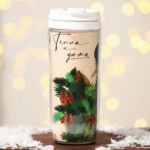 Термостакан новогодний пластиковый "Тепла и уюта", 350 мл