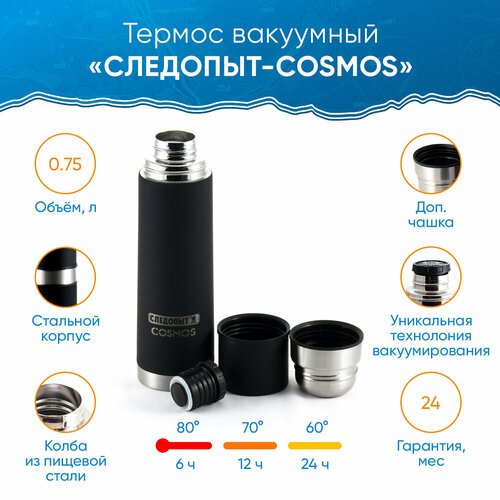 Термос вакуумный с двойной крышкой Следопыт "COSMOS", 0,75 л