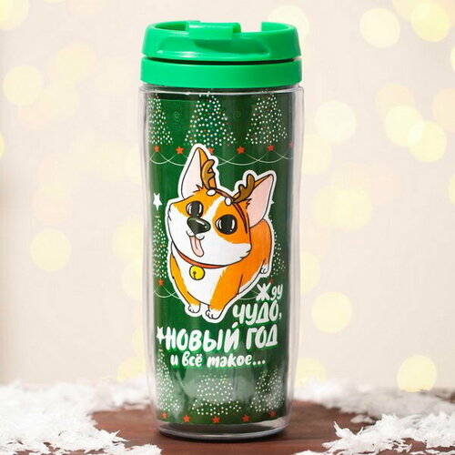 Термостакан новогодний пластиковый "Жду чудо", 350 мл