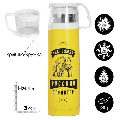 Термос с кружкой "Русский характер", 500 мл, сохраняет тепло 12 ч./В упаковке шт: 1