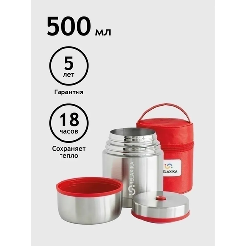 Термос для еды Relaxika 301 (0,5 литра) в термочехле, стальной