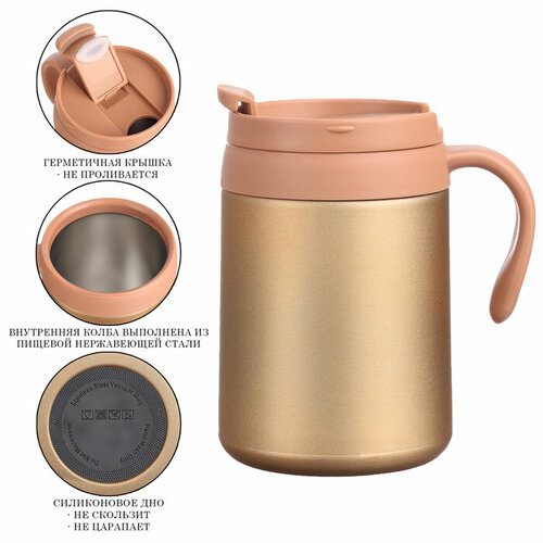 Термокружка, 450 мл, Hot & Сool, сохраняет тепло 12 часов, 13 х 16 см, золото