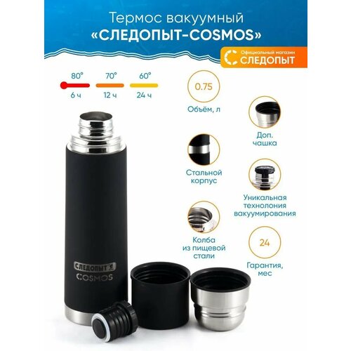 Термос вакуумный с двойной крышкой следопыт COSMOS 0,75 л
