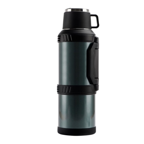 Термос для чая и кофе вакуумный, для напитков с кнопкой-клапаном ARCUDA ARC-H37 Eco-Army seria, крышка-чашка, 1.5 литра, черный