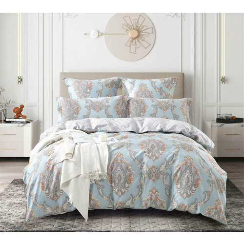 Grazie home Постельное белье Rania цвет: голубой, бежевый (2 сп. евро)