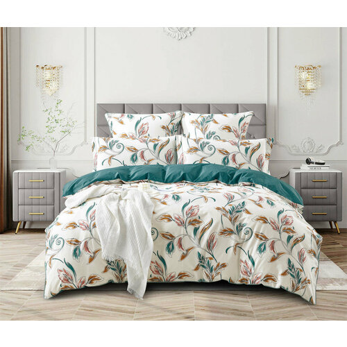 KARTEKS Постельное белье Далия цвет: белый, бирюзовый (2 сп. евро)