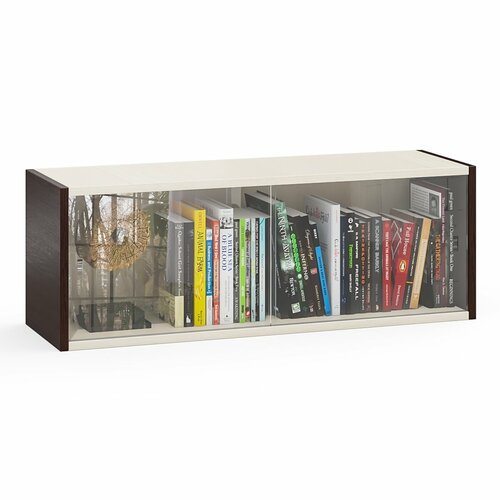 Полка книжная КН-01, цвет венге/дуб, ШхГхВ 83х25х30 см, стеклянные дверцы (ДВА цвета венге и дуб)