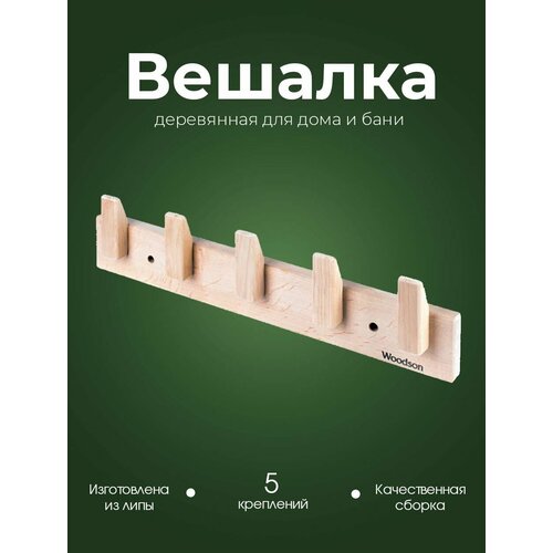 Вешалка деревянная Woodson D5 Липа, 5 крючков