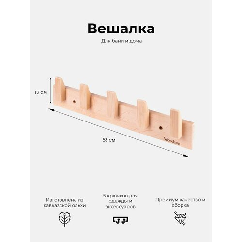 Вешалка деревянная Woodson D5 Ольха, 5 крючков
