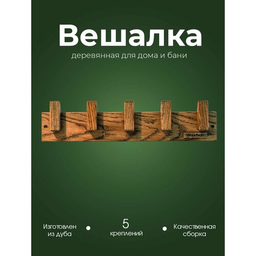 Вешалка WoodSon D5 из дуба, 5 крючков